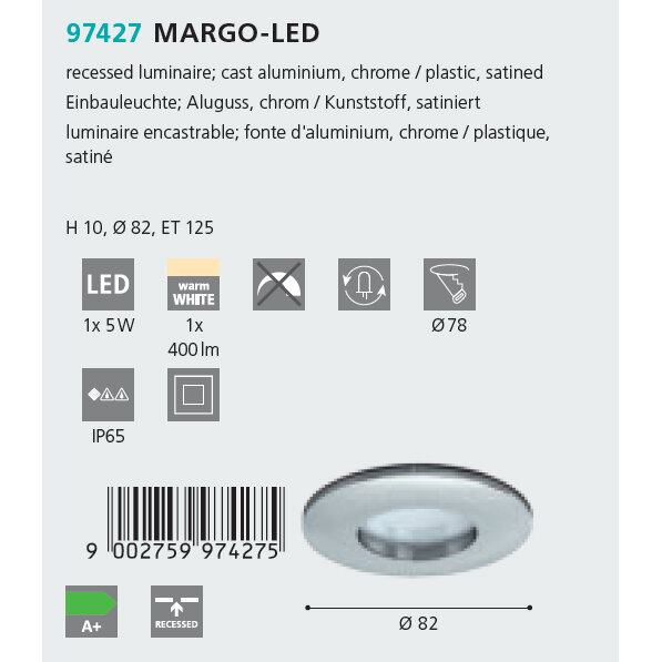Ниже Вы можете прочитать отзывы на Встраиваемый светильник Eglo Margo-Led 97427, LED, кол-во ламп:1шт., Хром, ознакомится с подробными характеристиками, посмотреть интересные обзоры и фотографии на Встраиваемый светильник Eglo Margo-Led 97427, LED, кол-во ламп:1шт., Хром.