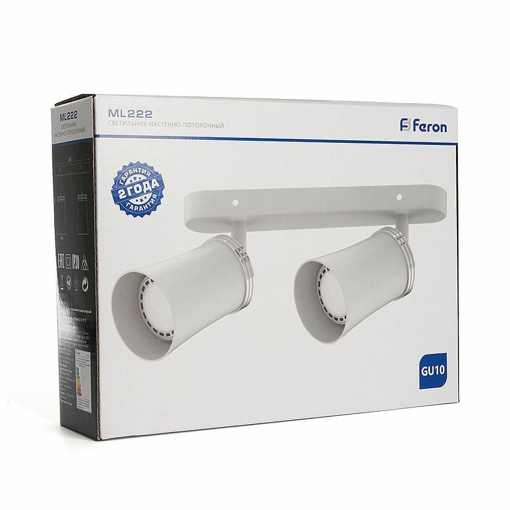 FERON Светильник настенно-потолочный под лампу 2х50W GU10, белый ML222 41482