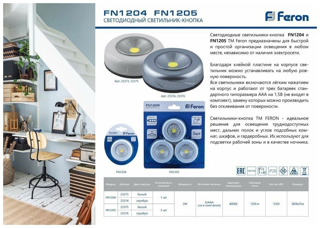 Ниже Вы можете прочитать отзывы на Светодиодный светильник-кнопка FN1204 (1шт в блистере), 2W, серебро, FERON 23374 (1 шт.), ознакомится с подробными характеристиками, посмотреть интересные обзоры и фотографии на Светодиодный светильник-кнопка FN1204 (1шт в блистере), 2W, серебро, FERON 23374 (1 шт.).