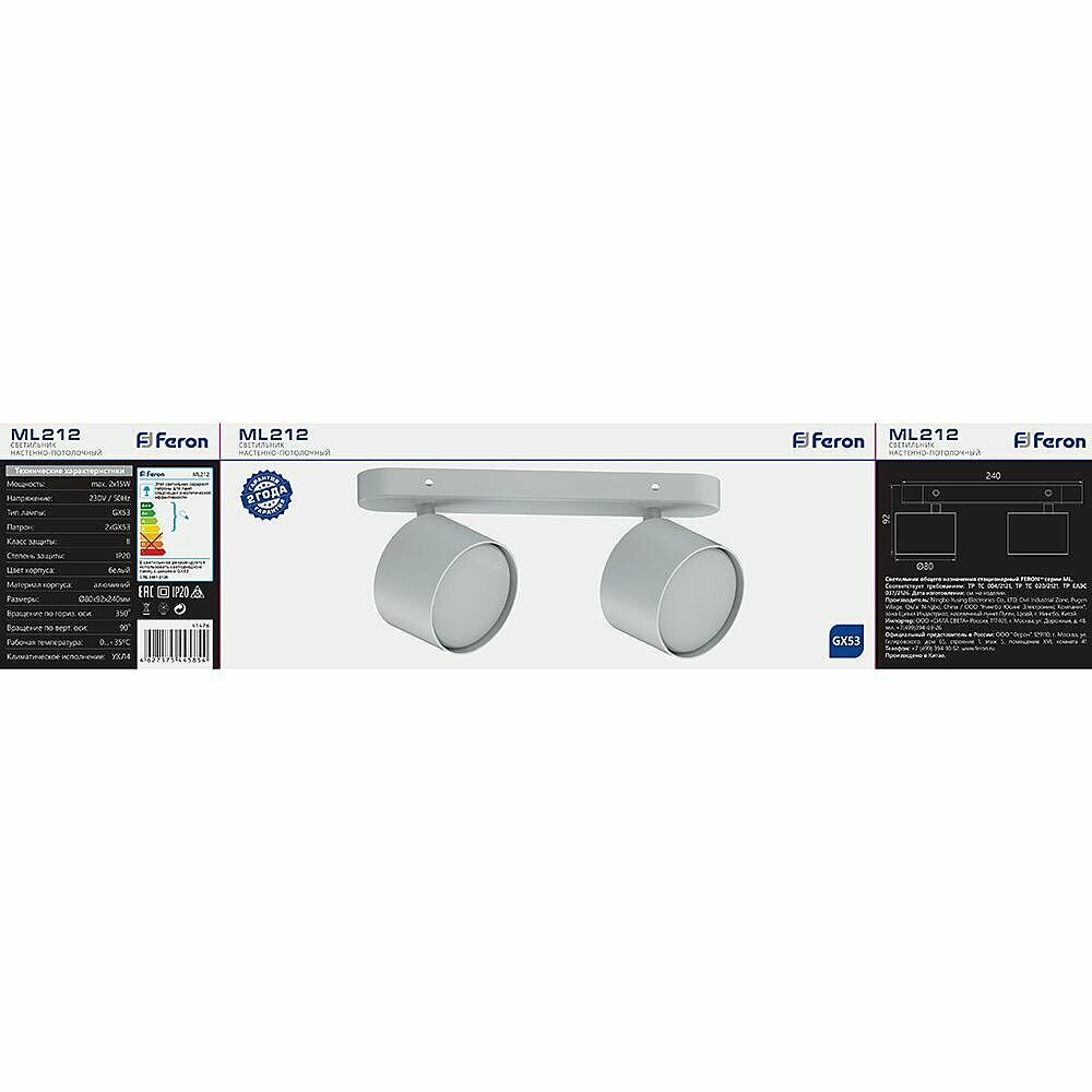 Светильник Feron ML212 настенно-потолочный GX53, белый
