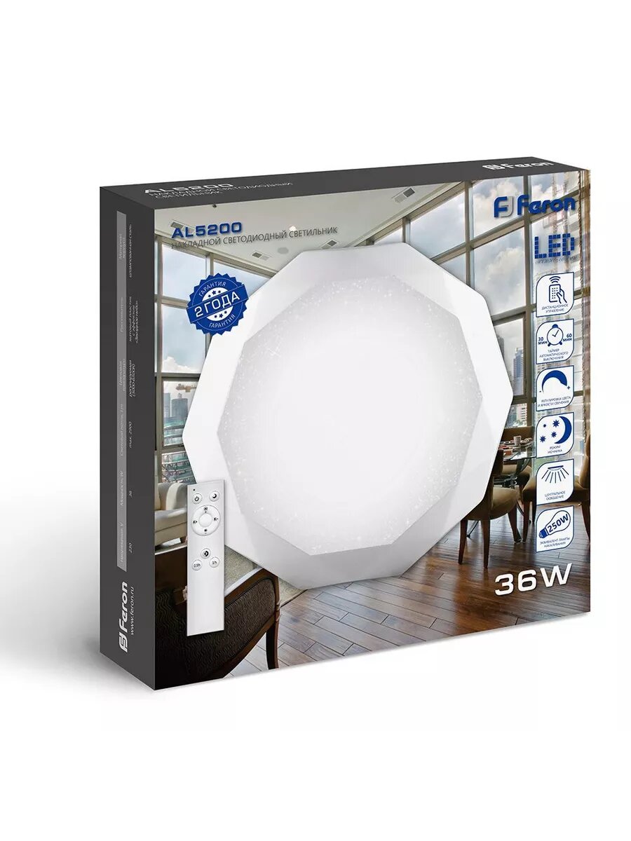 Светодиодный управляемый светильник накладной AL5200 DIAMOND тарелка 36W 3000К-6000K белый, FERON 29635 (1 шт.)