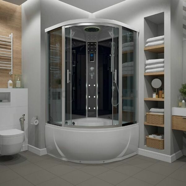 | Плюсы: | Есть гидромассаж, радио, очень вместительный бокс, есть все необходимое для комфортного пинятия душа. |