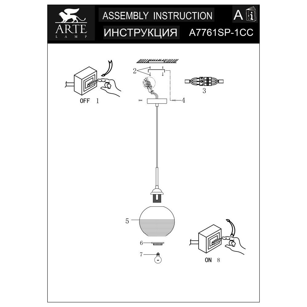 ARTE Lamp #ARTE LAMP A7761SP-1CC светильник подвесной
