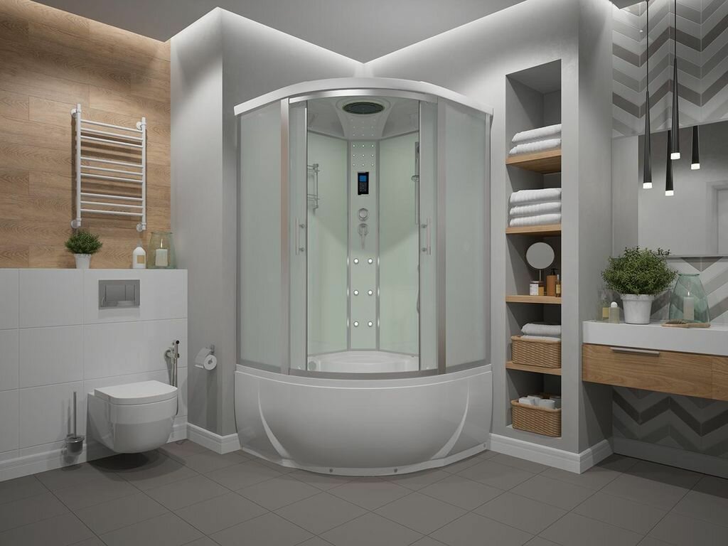| Плюсы: | Есть гидромассаж, радио, очень вместительный бокс, есть все необходимое для комфортного пинятия душа. |