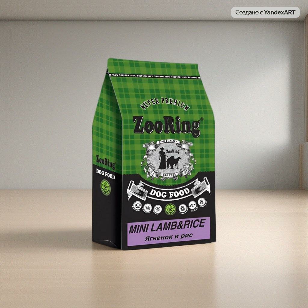 Сухой корм ZooRing Mini ягненок и рис для собак мелких пород, 2кг