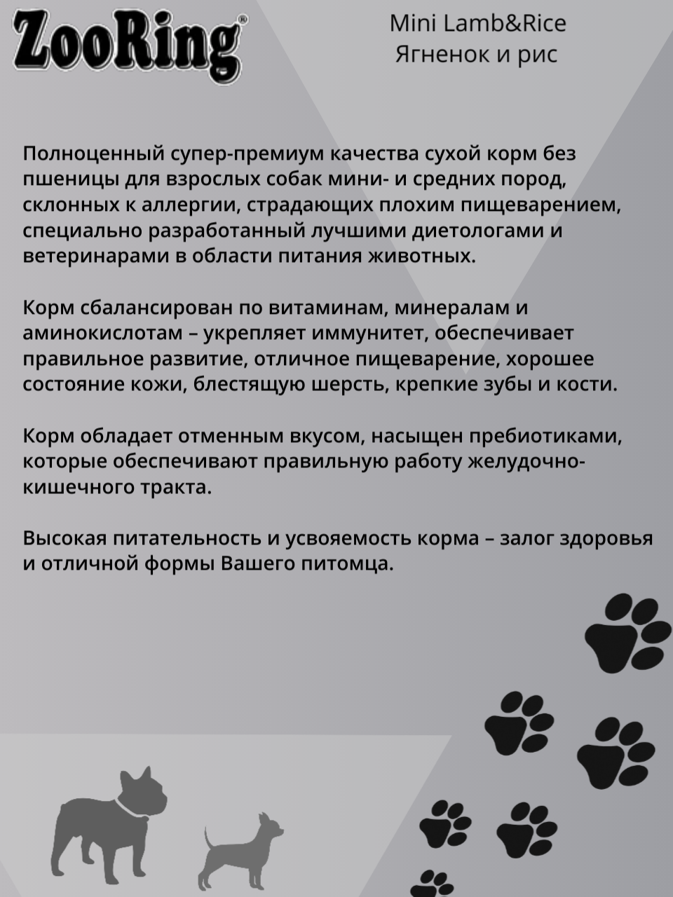ZooRing Корм сухой для собак Mini Lamb&Rice Ягненок и рис, 0,7кг
