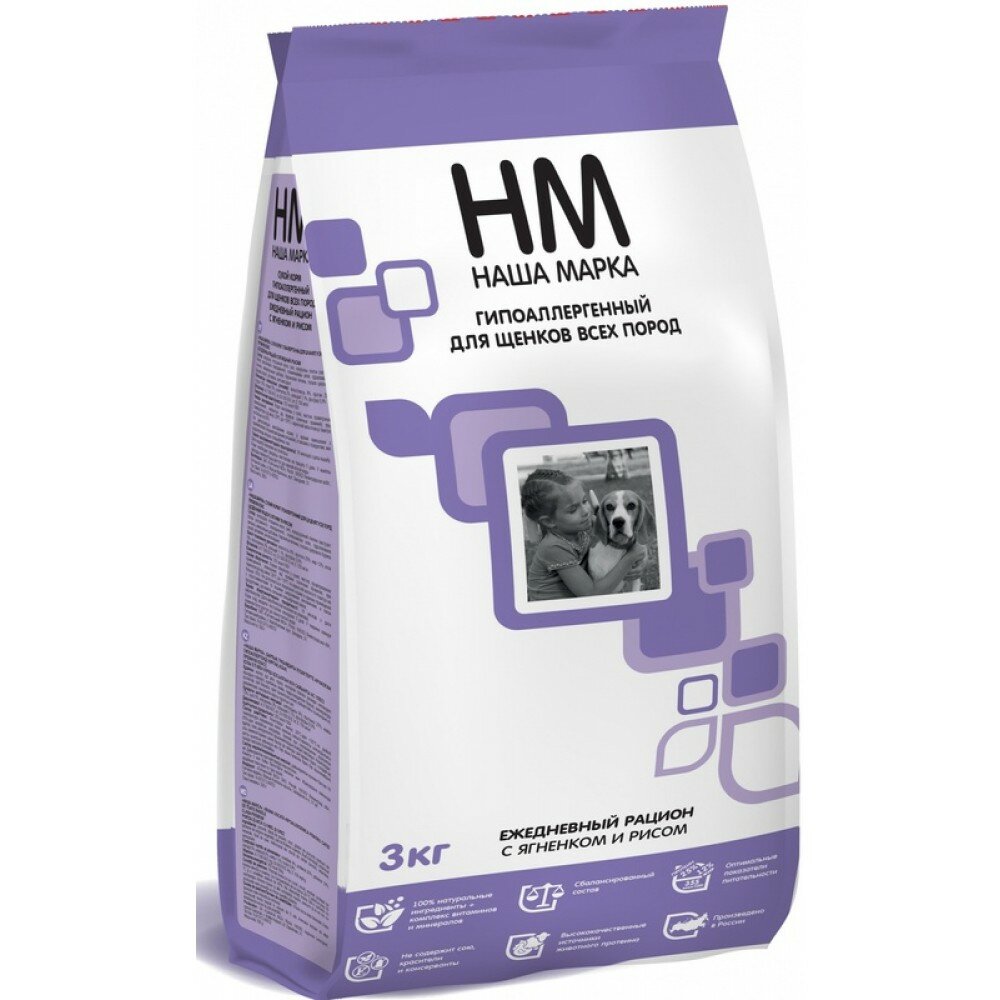 Сухой полнорационный корм "Наша Марка", Гипоаллергенный, для щенков всех пород, с ягненком и рисом, 3 кг