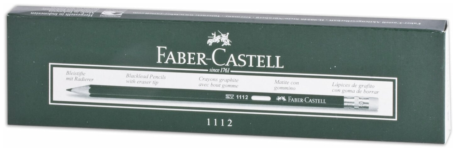 Карандаш чернографитный FABER-CASTELL, 1 шт., "1112", НВ, с ластиком, корпус черный, 111200