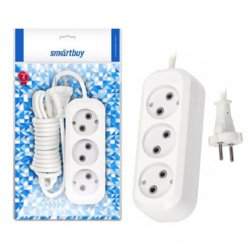 Удлинитель SmartBuy SBE-10-3-02-N/SBE-10-3-03-N/SBE-10-3-05-N, 3 розетки, б/з, 10А / 2200 Вт белый 2 м 3