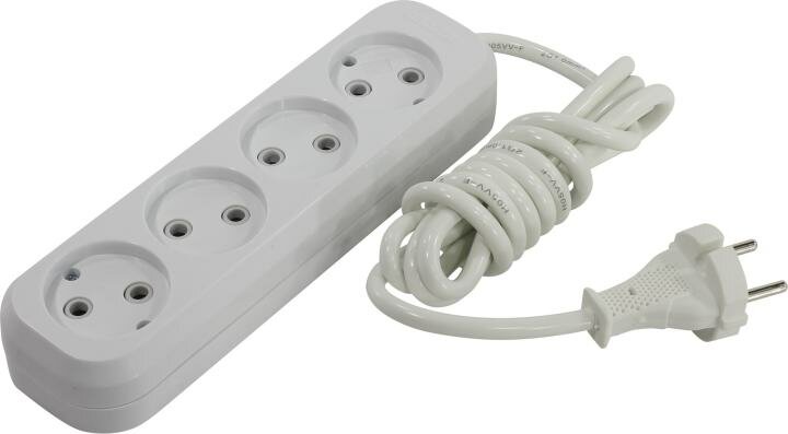Удлинитель 4 гнезда 2 метра 10А/2,2кВт без заземления ПВС 2х1,0 (SBE-10-4-02-N) (1/50)