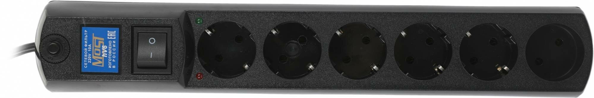 Сетевой фильтр Most HV6 2м (6 розеток) черный (коробка)