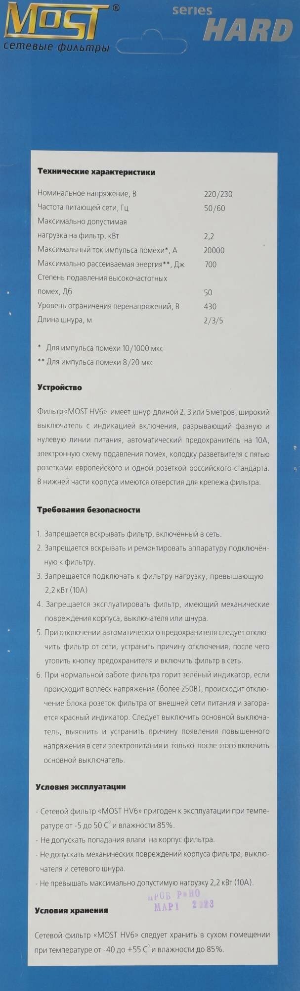 Сетевой фильтр MOST hard hv6 2м черный .