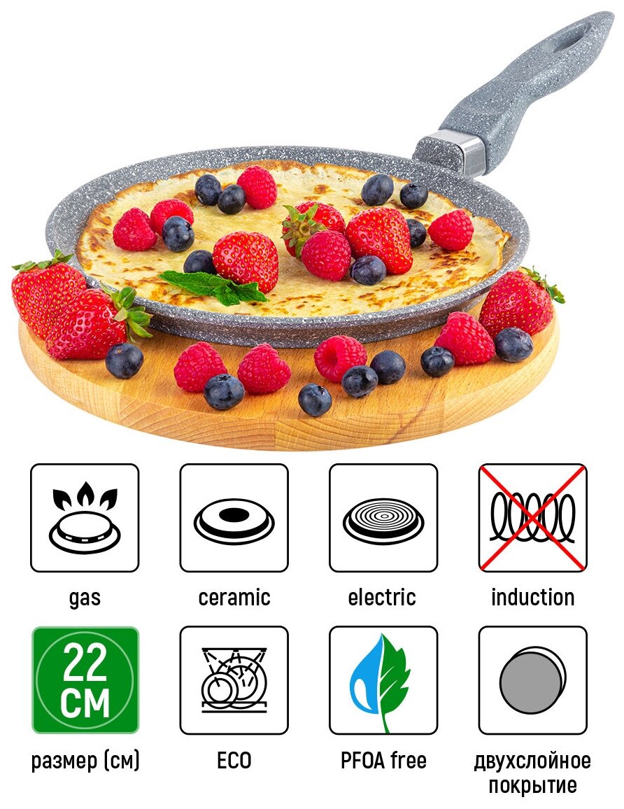 Сковорода блинная Elan Gallery гармония вкуса Серый мрамор, несъёмная ручка, 22 см интересное: