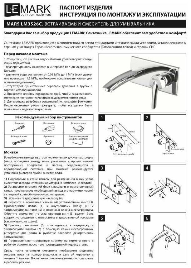 Смеситель для раковины, встраиваемый Lemark Mars LM3526C