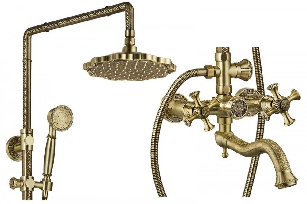 Душевая стойка Zorg Antic A 7002DS-SL, латунь серебро, с тропическим душем, с орнаментом, вентильная, ретро стиль интересное: