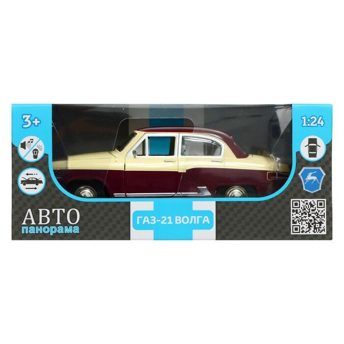 Автопанорама Машинка Волга ГАЗ-21 двухцветная, свет, звук, инерция, металл 1:24 JB1200212 с 3 лет
