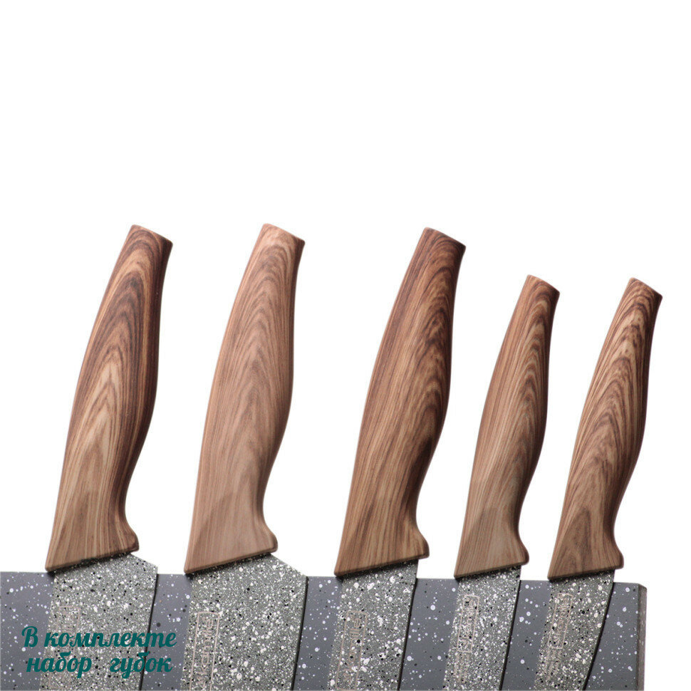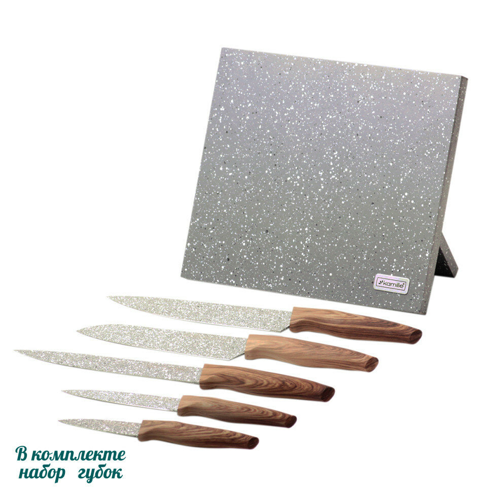 Набор ножей 6 предметов из нержавеющей стали на подставке с мраморным покрытием (5 ножей+подставка) KAMILLE интересное: