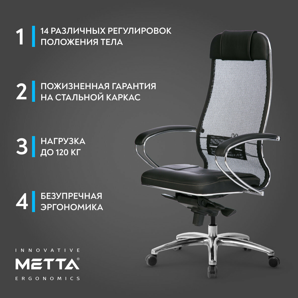 Кресло для руководителя Метта Samurai SL-1.04 черное (кожа/сетка/металл)
