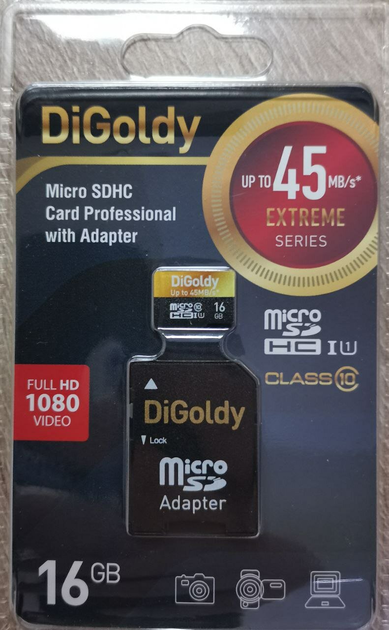 Digoldy 16GB microSDHC Class 10 UHS-1 Extreme с адаптером (45мб/с) .