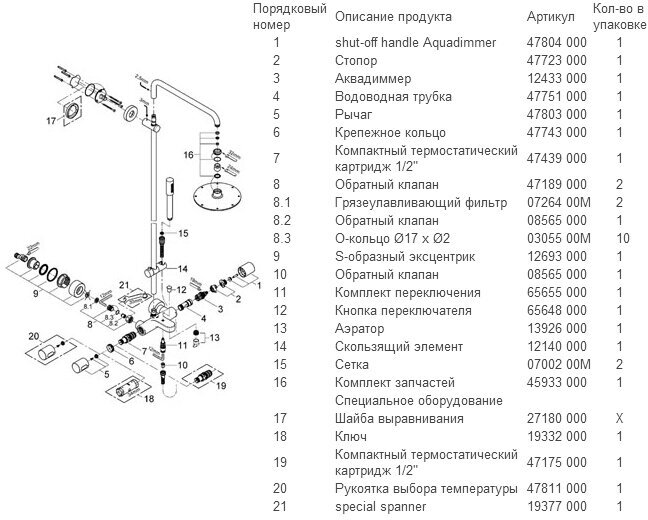 | Дополнительная информация | высота стойки для душа: 1583 мм; диаметр верхнего душа: 210 мм |