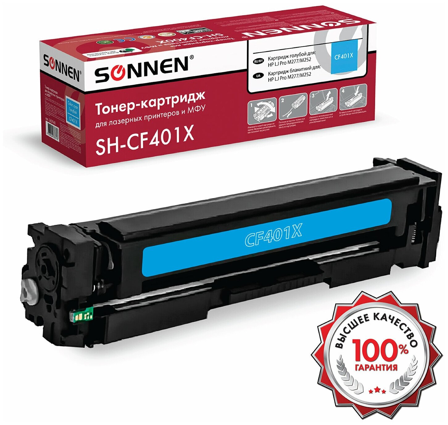 Картридж лазерный SONNEN (SH-CF401X) для HP LJ Pro M277/M252 высшее качество, голубой, 2300 страниц, 363943 (арт. 363943)