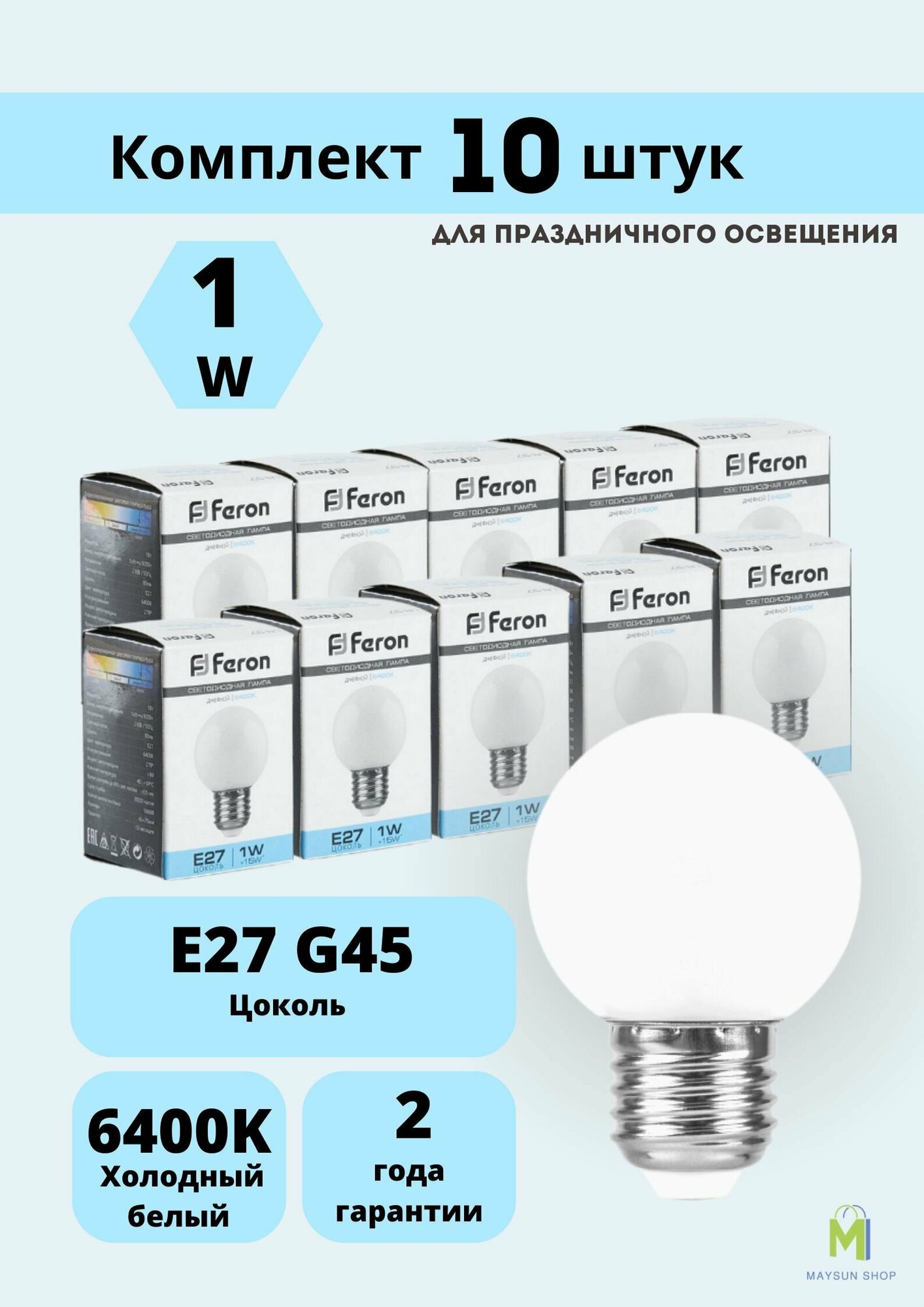 Набор светодиодных ламп для белт-лайт Feron LB-37 Шарик E27 1W 6400K матовый 10 шт.