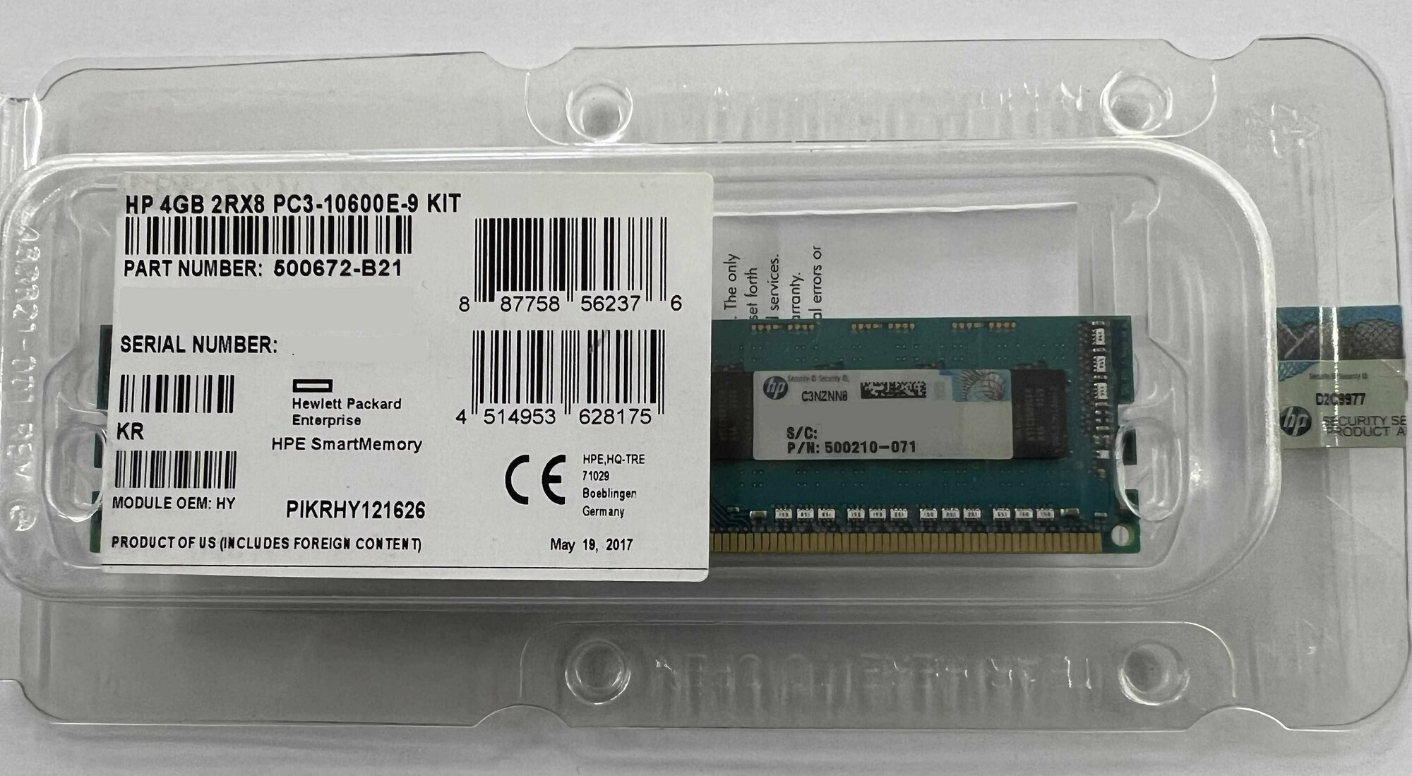 Модуль памяти HP 4Gb Unbuffered ECC PC3-10600 500672-B21