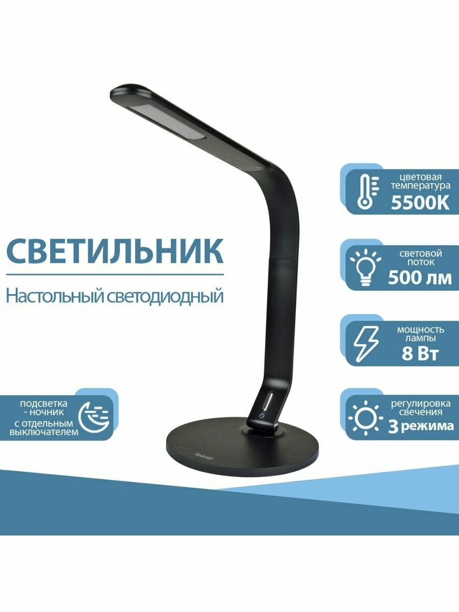 TLD-555 Black/LED/500Lm/5500K/Dimmer/USB Светильник настольный, 8W. Сенсорный выключатель. Черный.