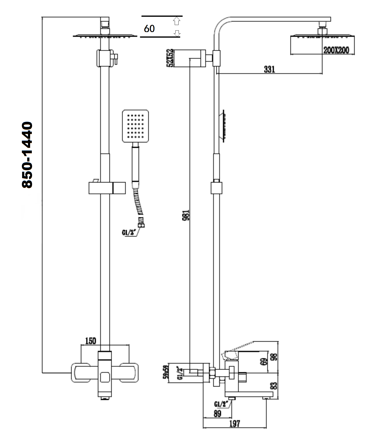 | Особенности | S-образные эксцентрики / аэратор / держатель душевой лейки / поворотный излив / регулируемый верхний душ / система быстрого монтажа |