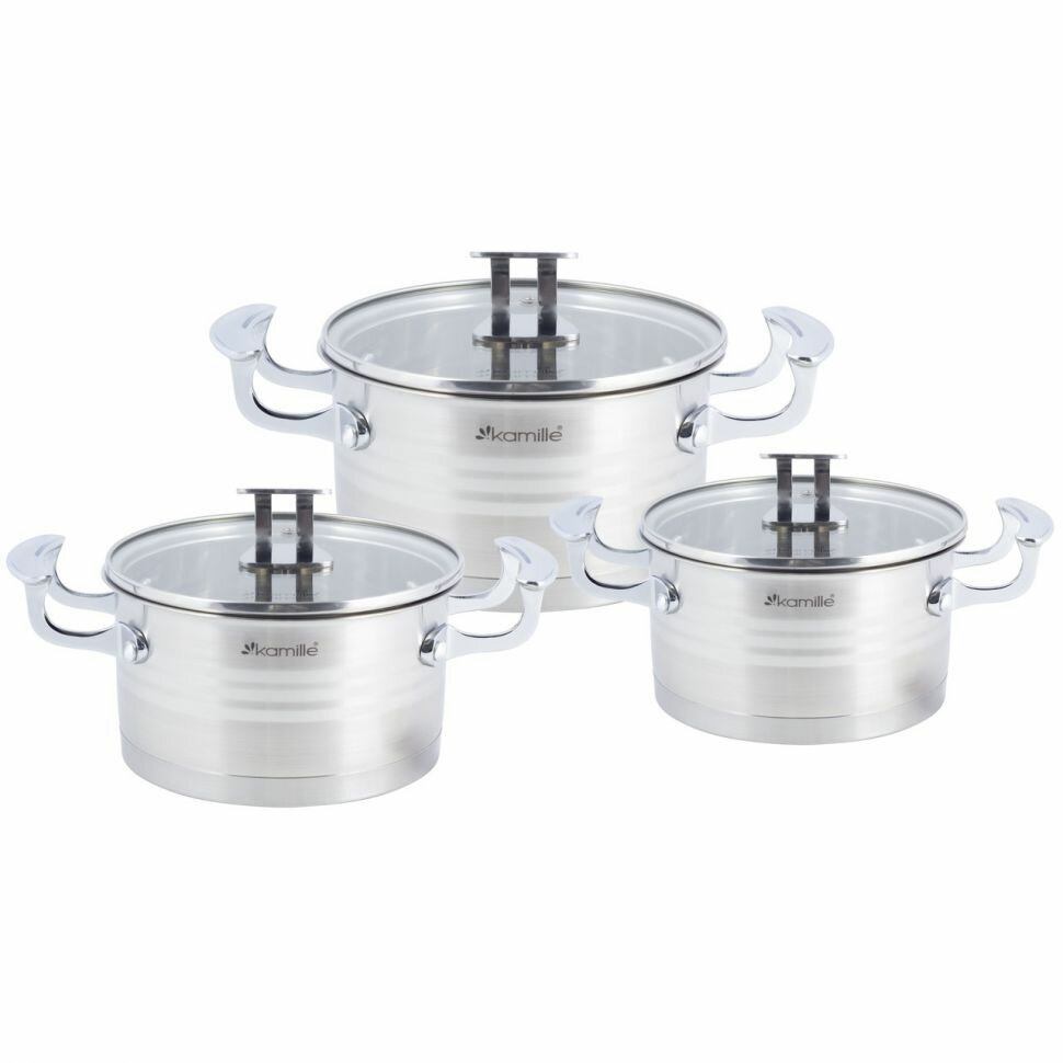 Купить Набор кастрюль 6 предметов Kamille KM-5861 (1,7 л; 2,4 л; 3,1 л из нержавеющей стали