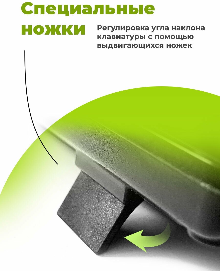 | Отзыв: | Посередине выемка, очень удобно провод наматывать на клавиатуру, если её нужно убрать. |