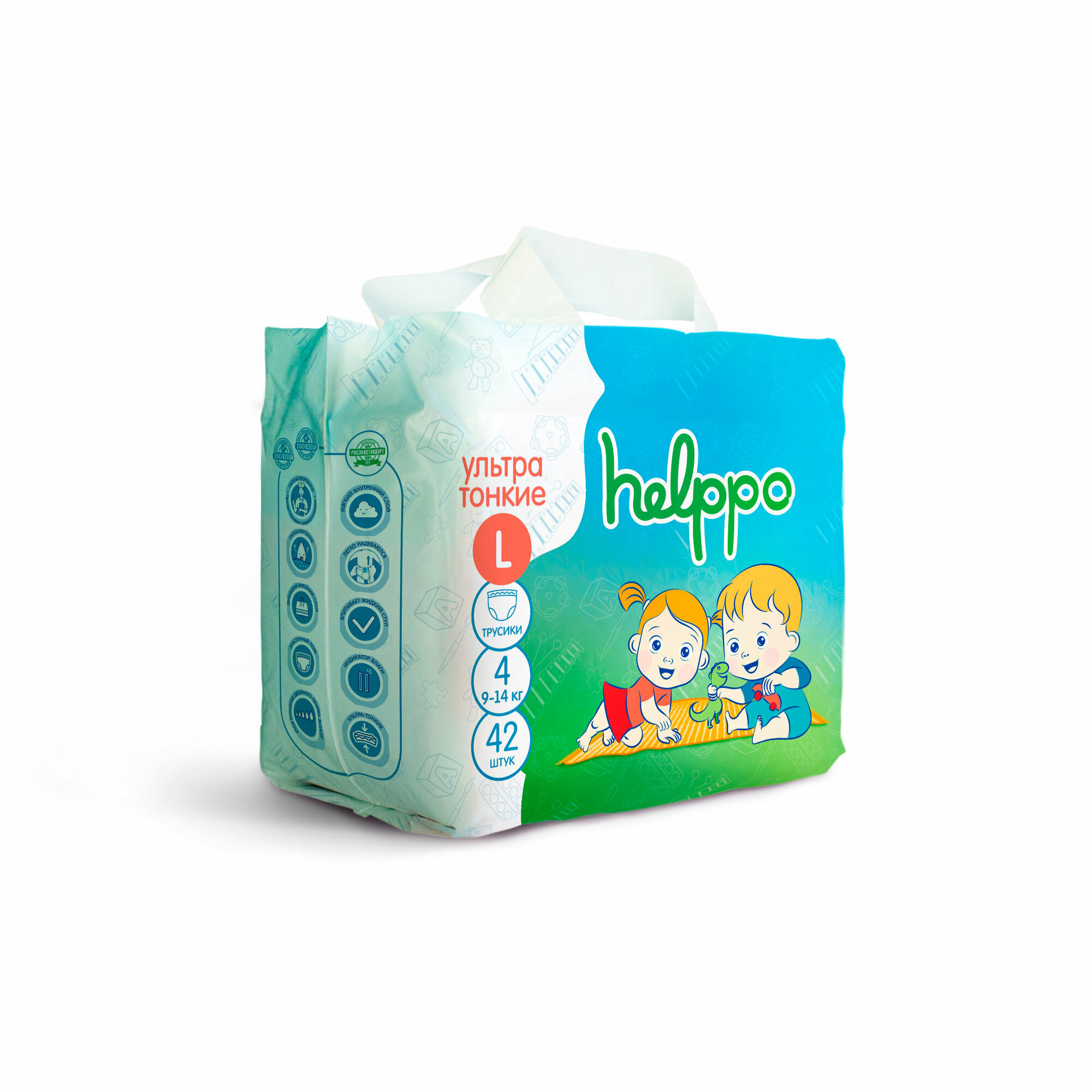 Подгузники трусики helppo, ультратонкие, размер L (9-14 кг), 42 шт
