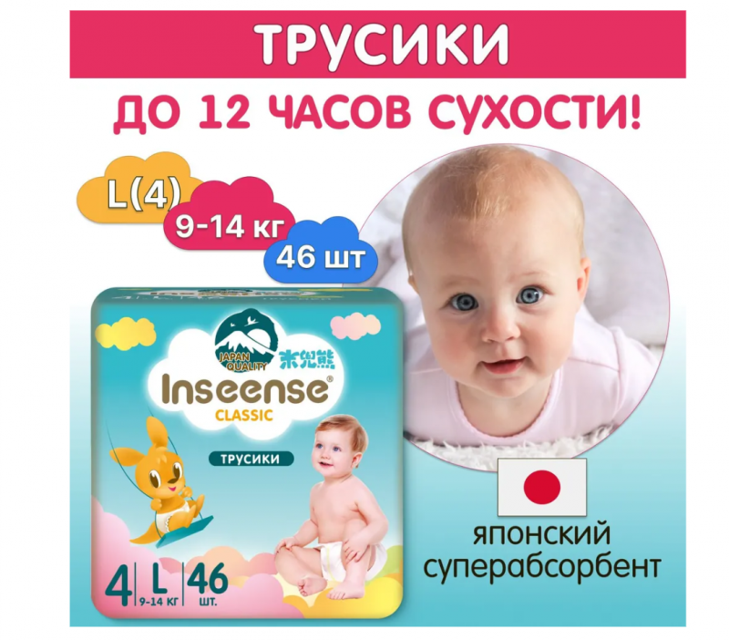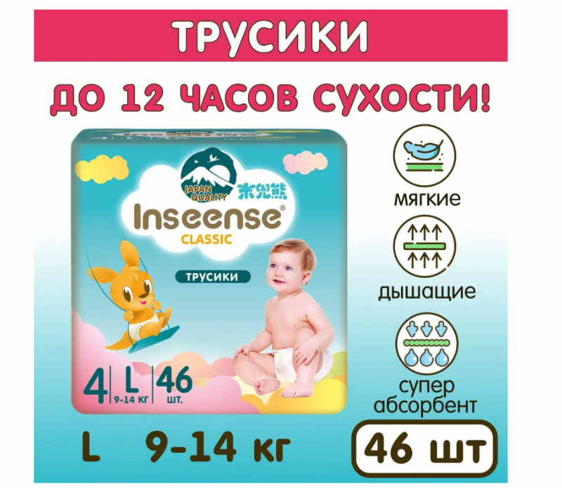 Трусики INSEENSE Classic L (9-14 кг) 46 шт интересное:
