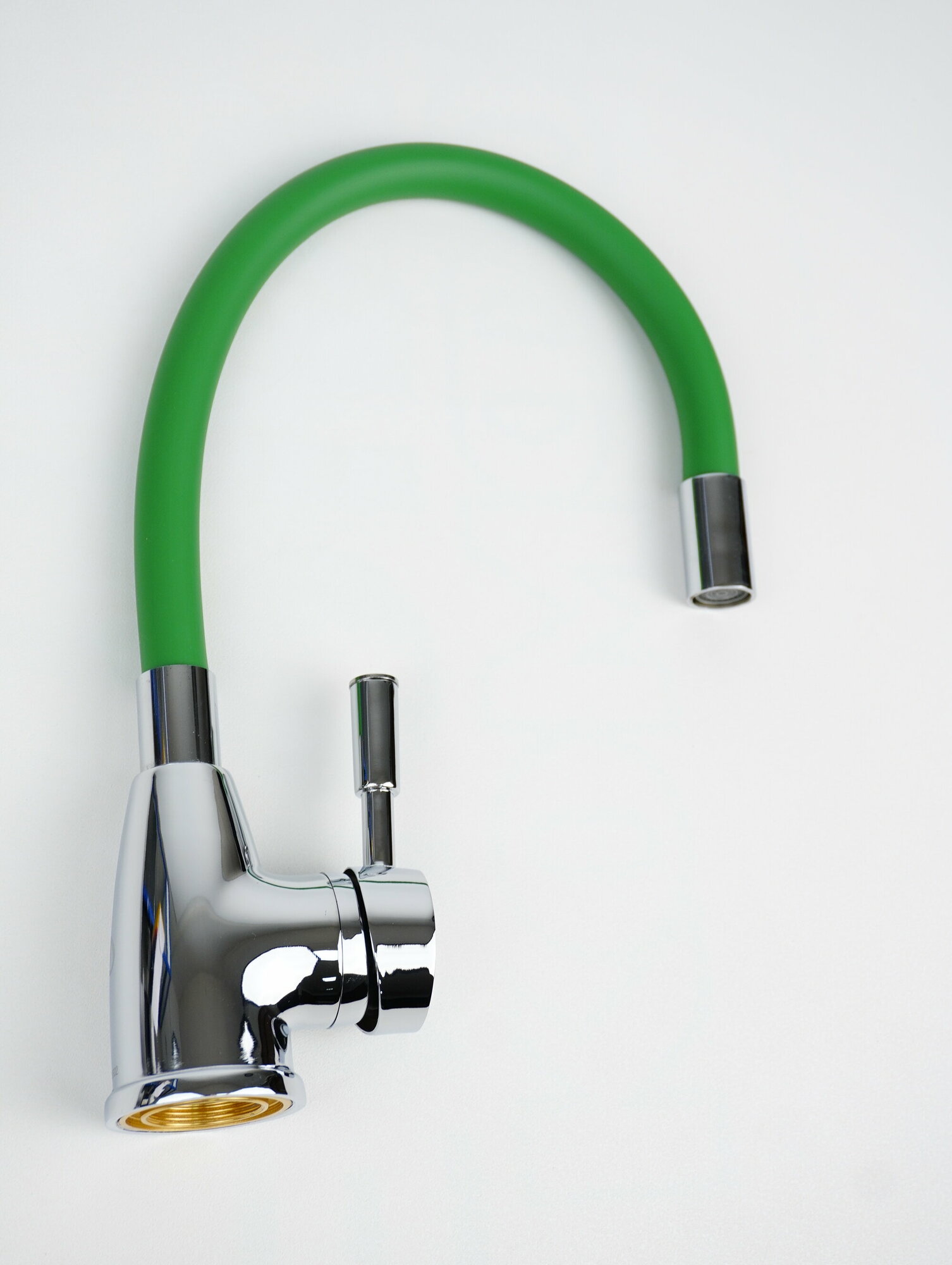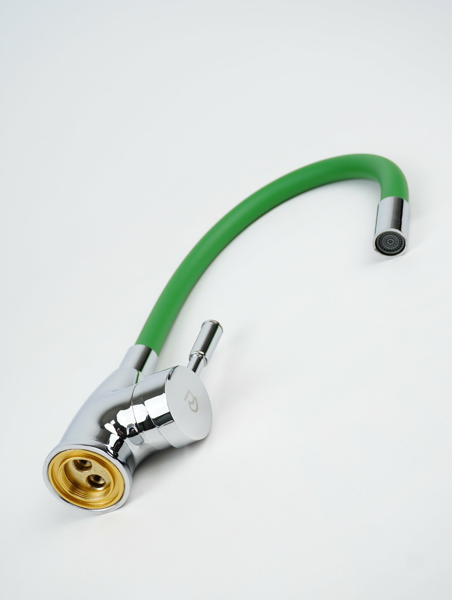 Смеситель для кухни Roegen RD014G с боковой ручкой и гибким изливом, на гайке, кран для кухни, для мойки, салатовый