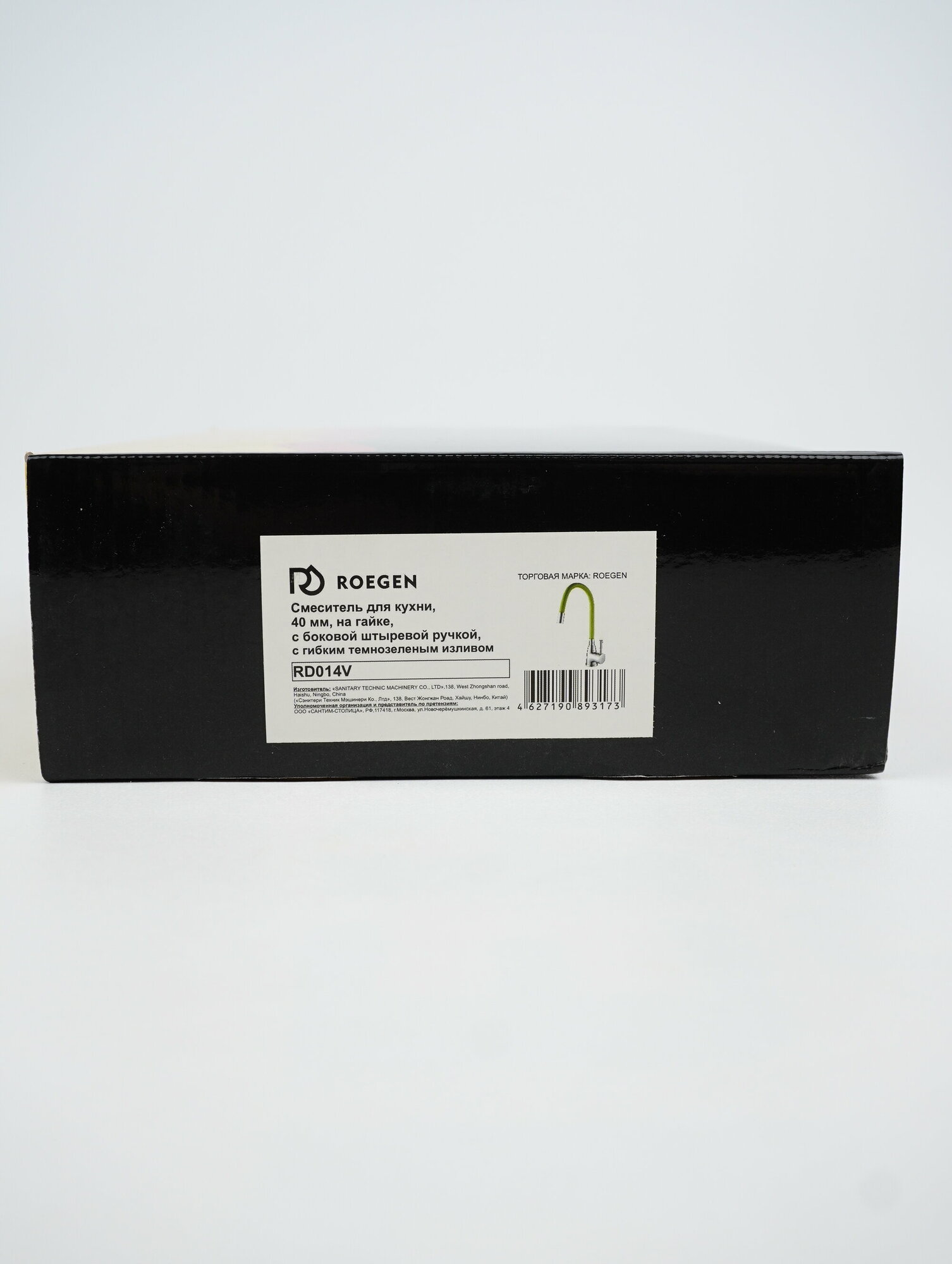 Смеситель ROEGEN RD014V для кухни, 40 мм, на гайке, с боковой штыревой ручкой, с гибким темно зеленый изливом