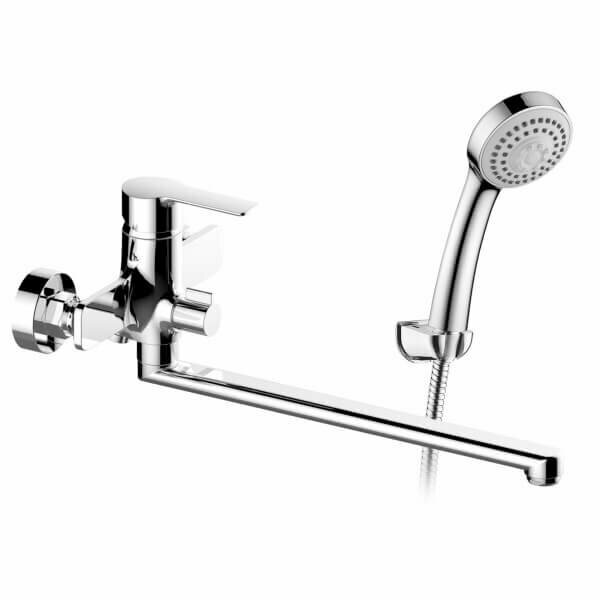 Смеситель Elghansa EMERALD New 5392010 для ванны с длинным изливом, с душевым комплектом, однорычажный, хром