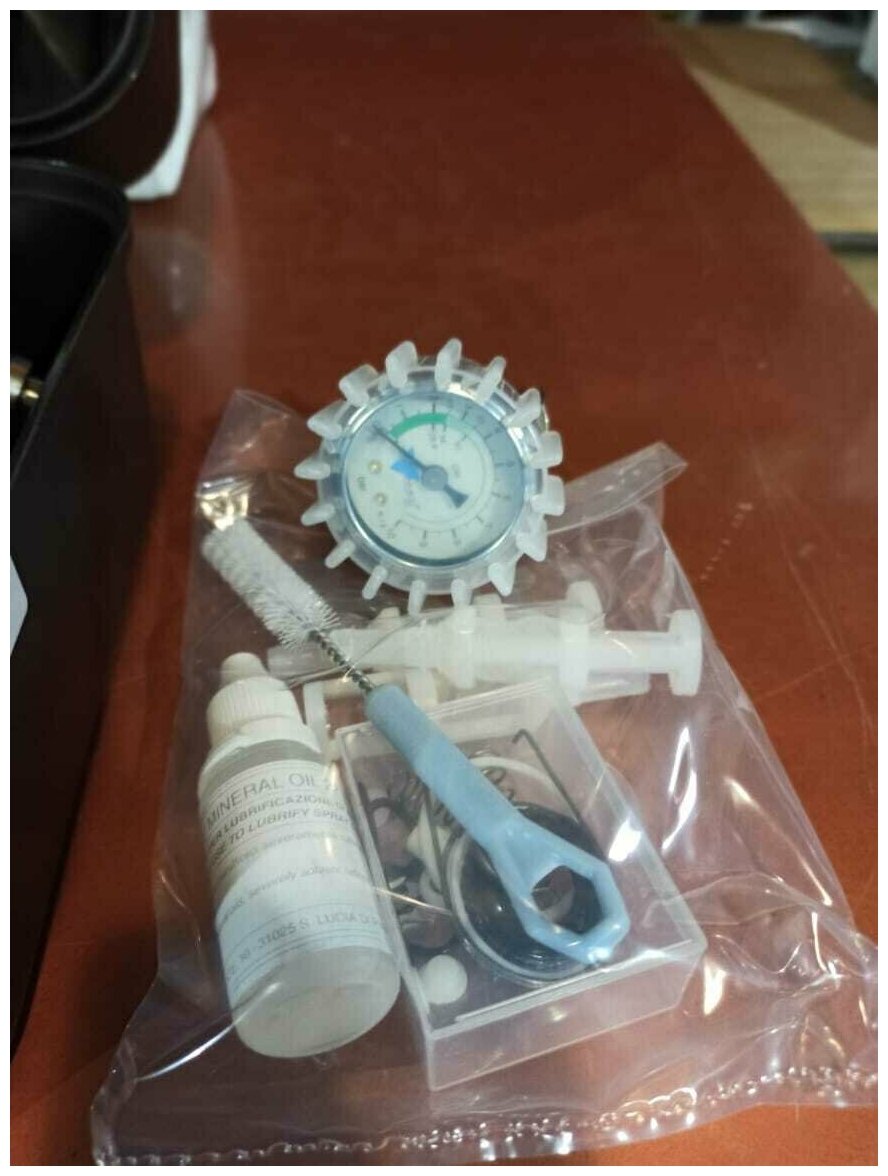 | Комплектация | - запасные части: набор прокладок, пружинок, стопорных колец, шток воздушного клапана - принадлежности: ключ универсальный, ёршик для чистки краскопульта, 3 фильтра для очистки ЛКМ, масло 15 мл для смазки трущихся частей и механизмов краскораспылителя, не соприкасающихся при работе с ЛКМ - верхний бачок 0.68 л |