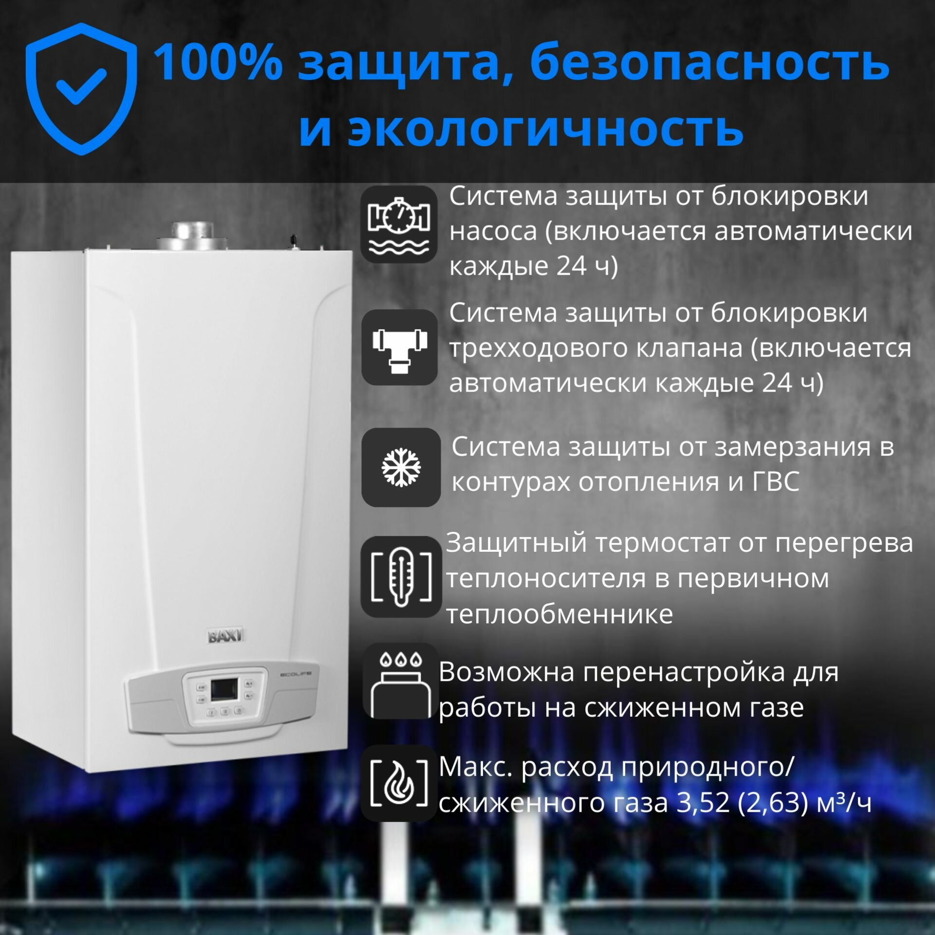 Настенный газовый котёл BAXI ECO LIFE 1.31F интересное: