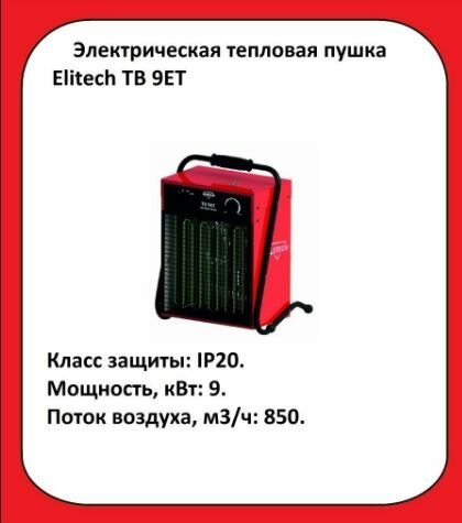 Электрическая тепловая пушка ELITECH ТВ 9ЕТ без горелки (9 кВт)