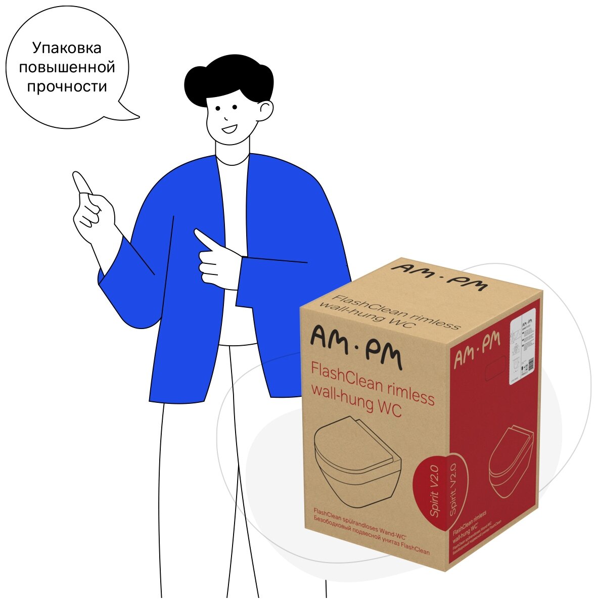 Унитаз подвесной безободковый AM.PM Inspire без сиденья, унитаз подвесной безободковый FlashClean, антивсплеск