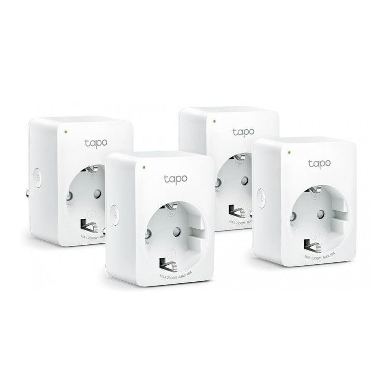 Розетка TP-LINK Tapo P100(4-pack) умная, мини, WiFi, ВТ, 10А, белая, 4 шт