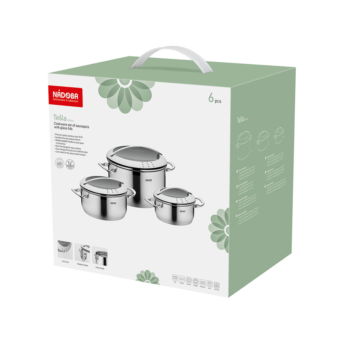 Набор кастрюль Nadoba Tesla со стеклянными крышками 6 предметов (727818)