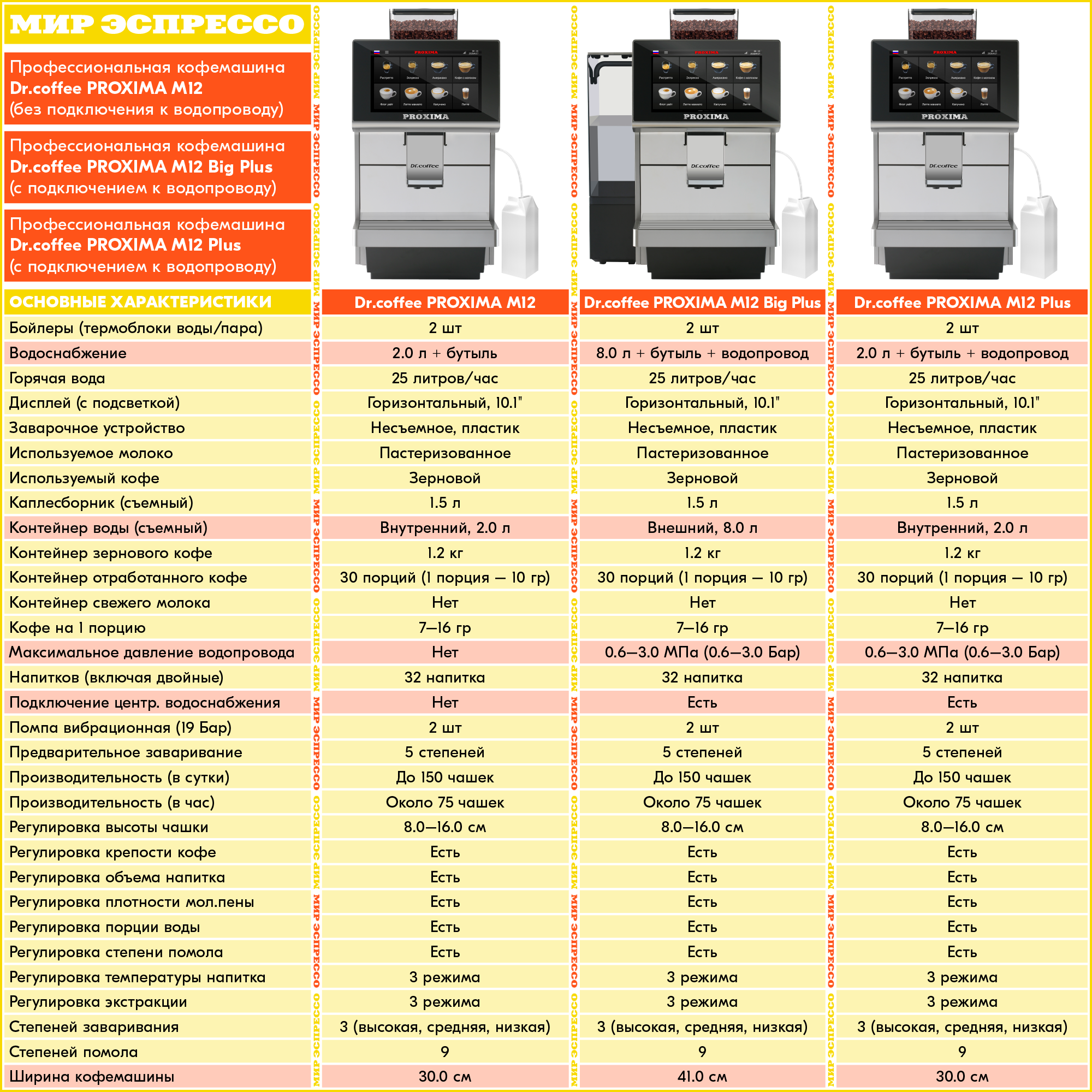 Профессиональная кофемашина Dr.coffee PROXIMA M12 Plus (с подключением к водопроводу) интересное: