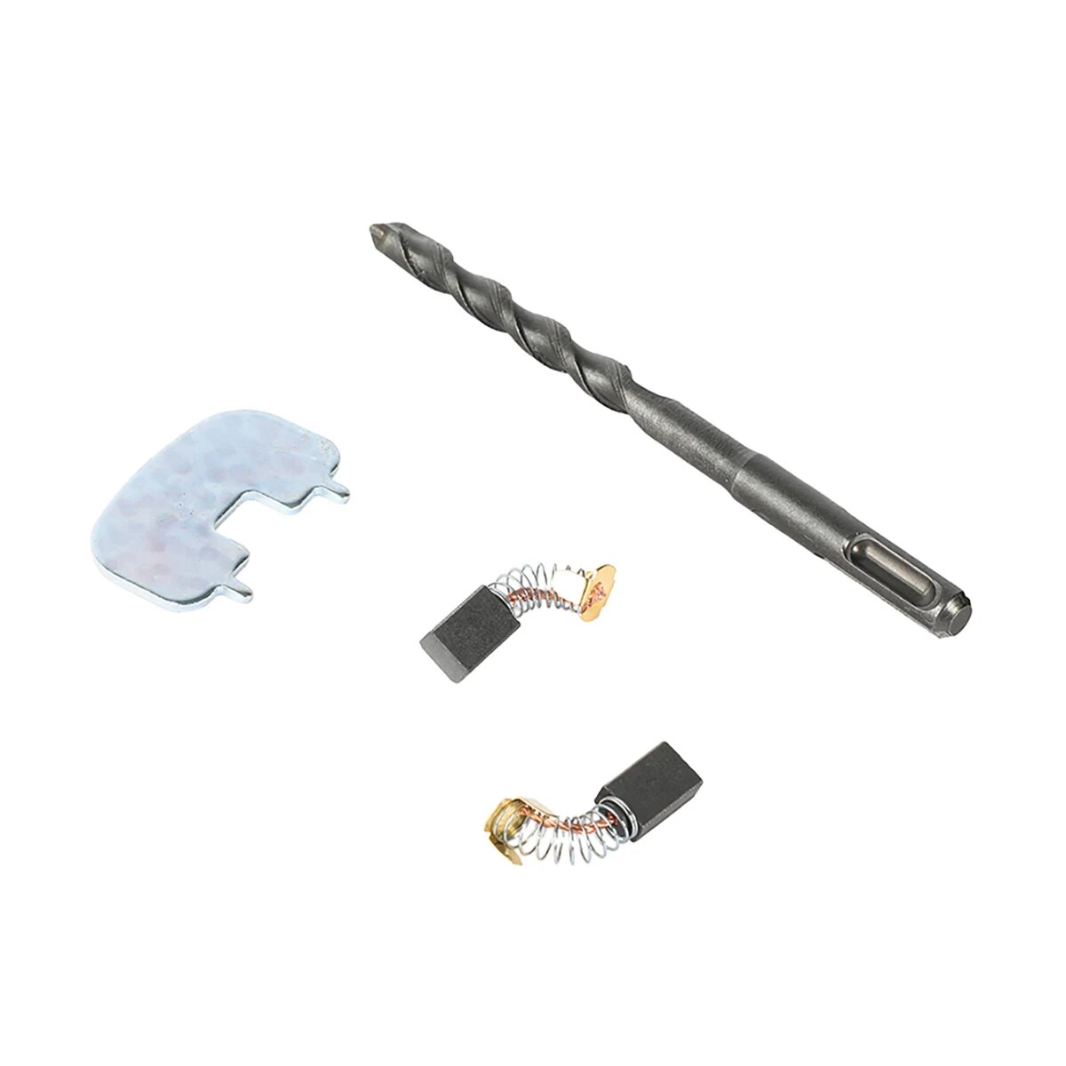 | Комплектация | дополнительная рукоятка, ограничитель глубины сверления, бур, запасные щетки, смазка для бура, ключ отсека для смазки, кейс |