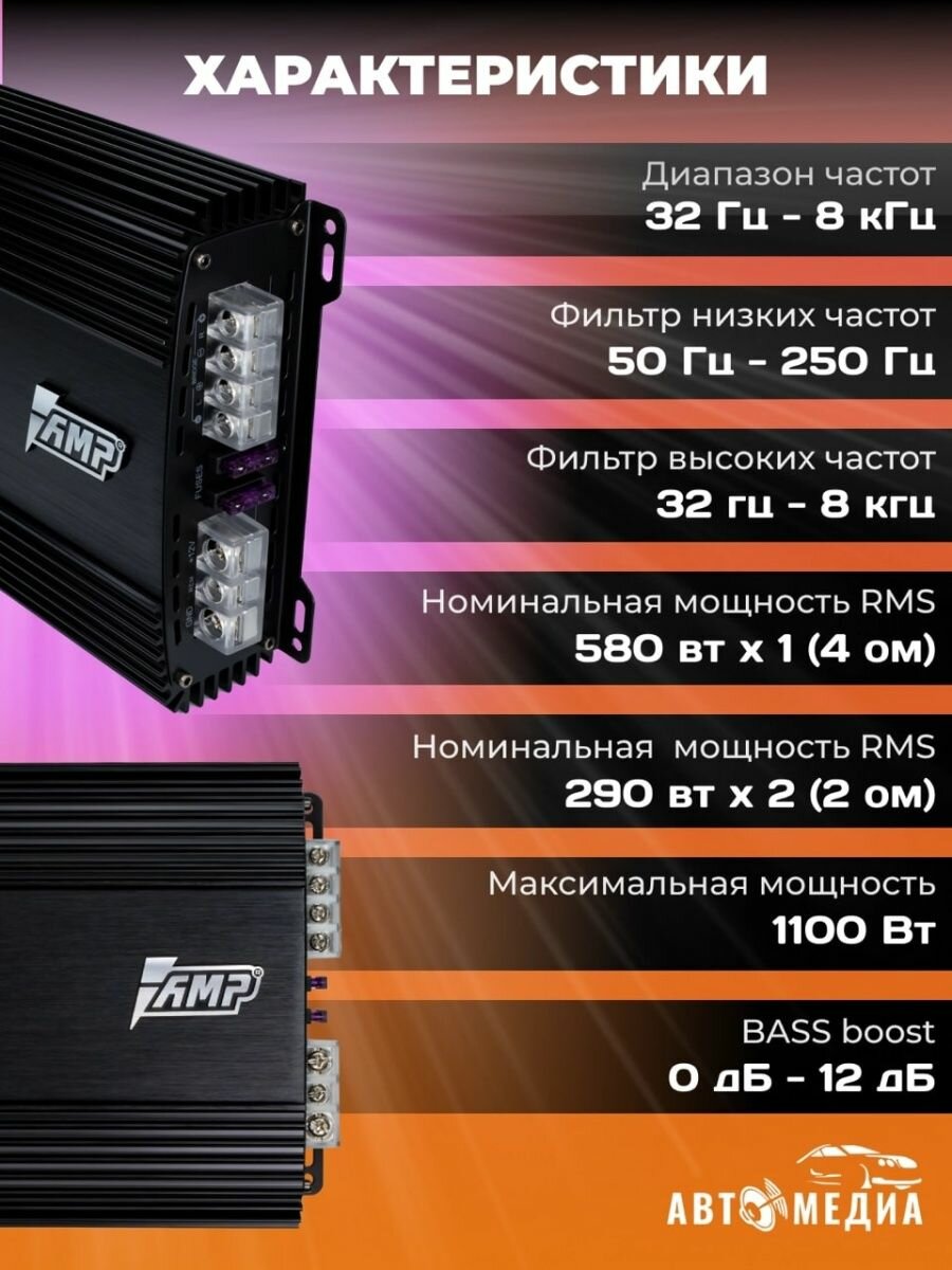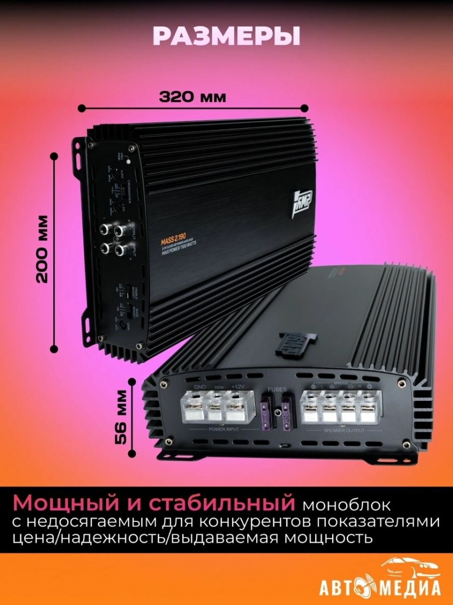 Автомобильный усилитель 2 канала AMP MASS 2.190 интересное: