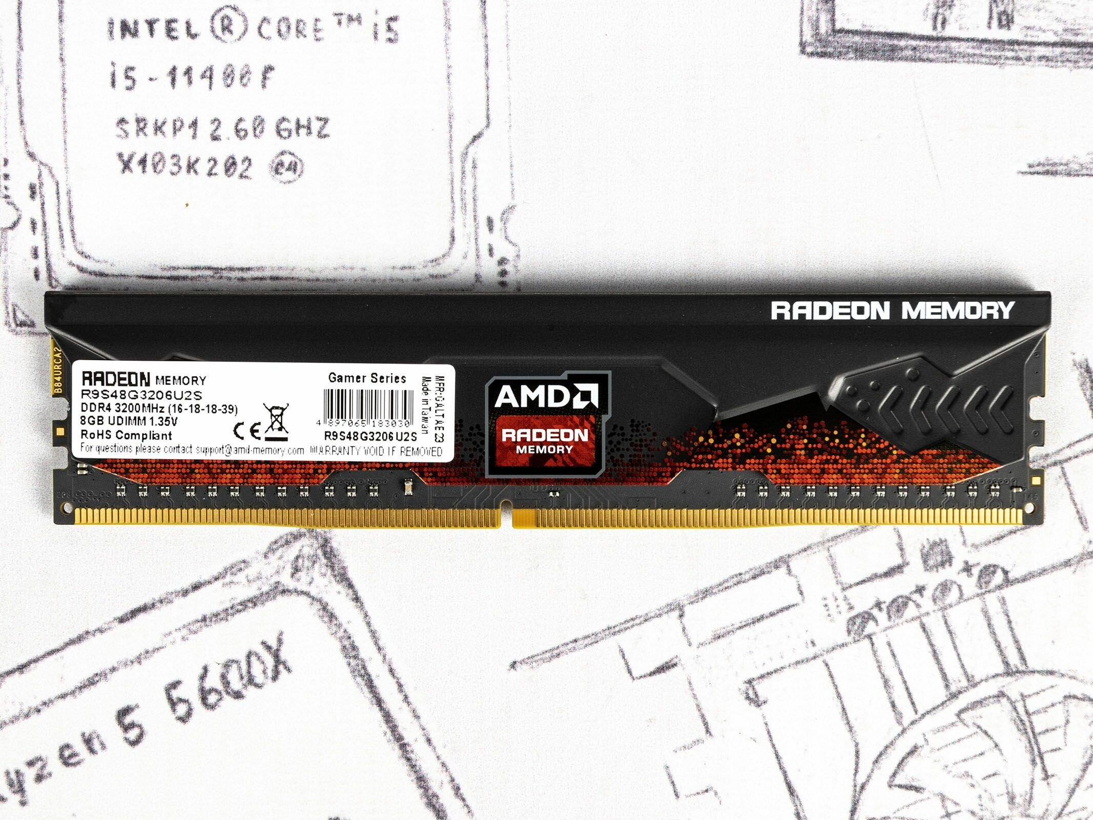 AMD DDR4 8Gb 3200MHz pc-25600 (r948g3206u2s-uo) oem R948g3206u2s-uo .