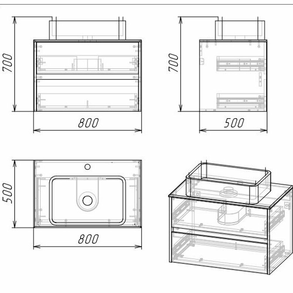 Тумба под раковину GROSSMAN "ЭДВАНС-80 см" с 2-я ящ. цемент светлый 108010