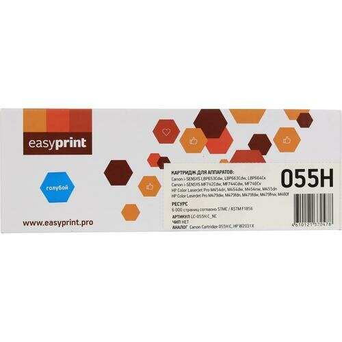 Картридж EasyPrint LC-055H C_NC для Canon i-SENSYS LBP663/664/MF742/744/HP CLJ Pro M454/455/479/480 (6000 стр.) голубой, без чипа