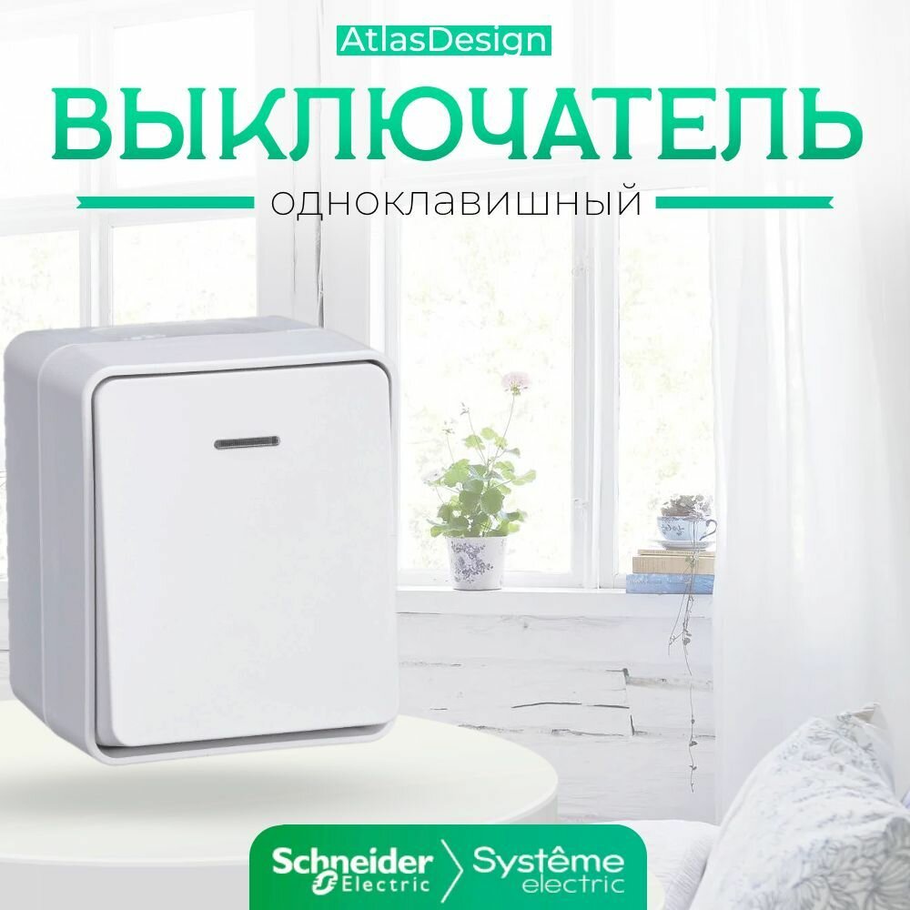 Выключатель Systeme Electric (schneider Electric) SCHNEIDER ELECTRIC AtlasDesign PROFI IP54 О/У 1-клавишный с подсветкой 10 АХ, Белый