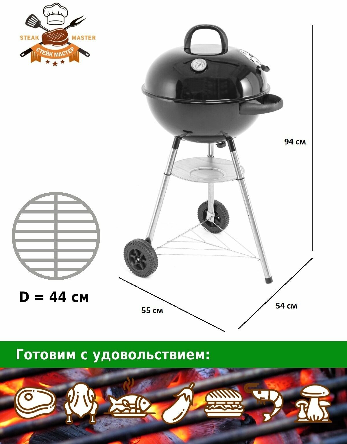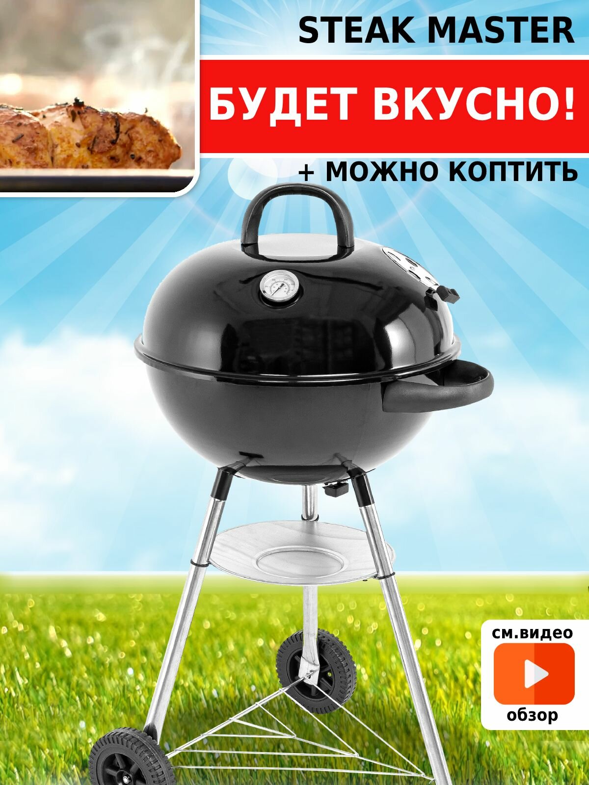 Гриль барбекю угольный Green Glade К182 уличный для дачи и пикника, круглый с крышкой и термометром на колесах, жаровня 45 см интересное: